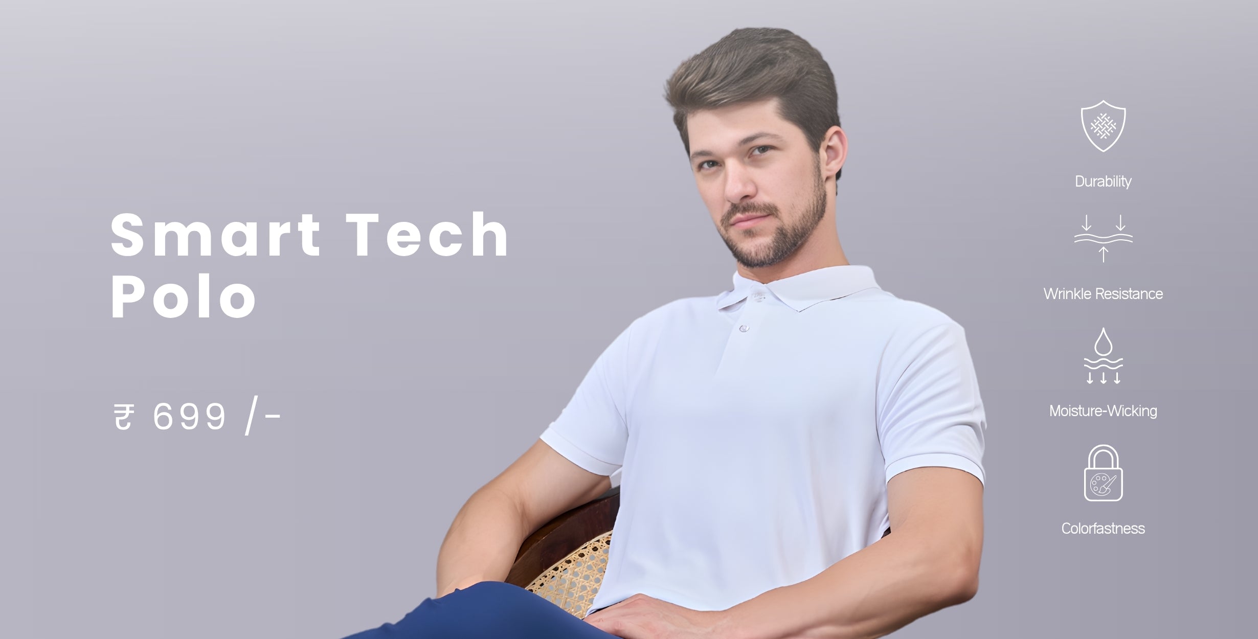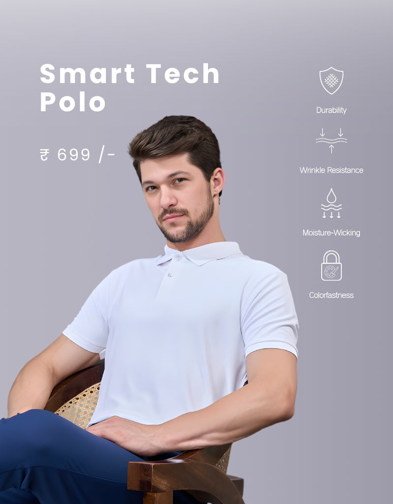 Smart tech polo - WhiteRegular price From Rs. 579.00From Rs. 579.00 Regular price Sale priceUnit price / per