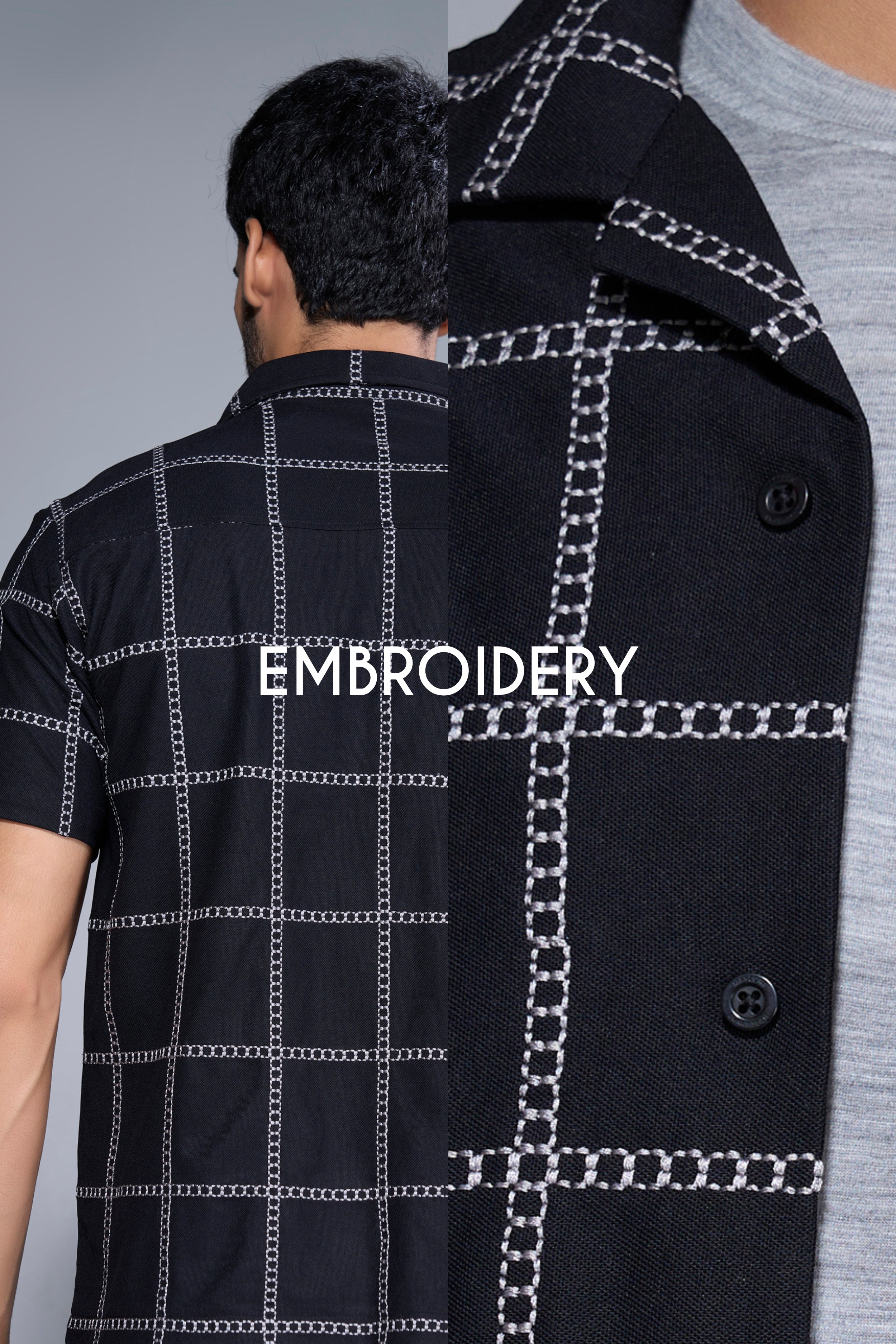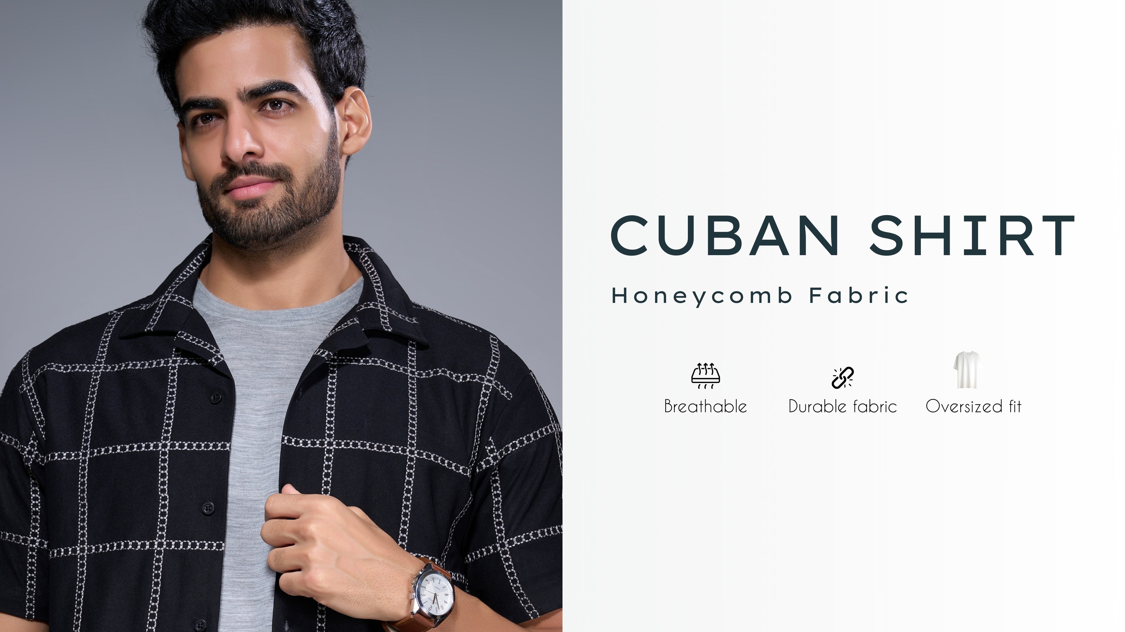 Designed for men who appreciate subtle details, the Black Cuban Shirt blends relaxed Cuban styling with elevated craftsmanship. Made from premium Honeycomb fabric, it features a distinctive textured weave that enhances breathability while delivering a rich, structured look