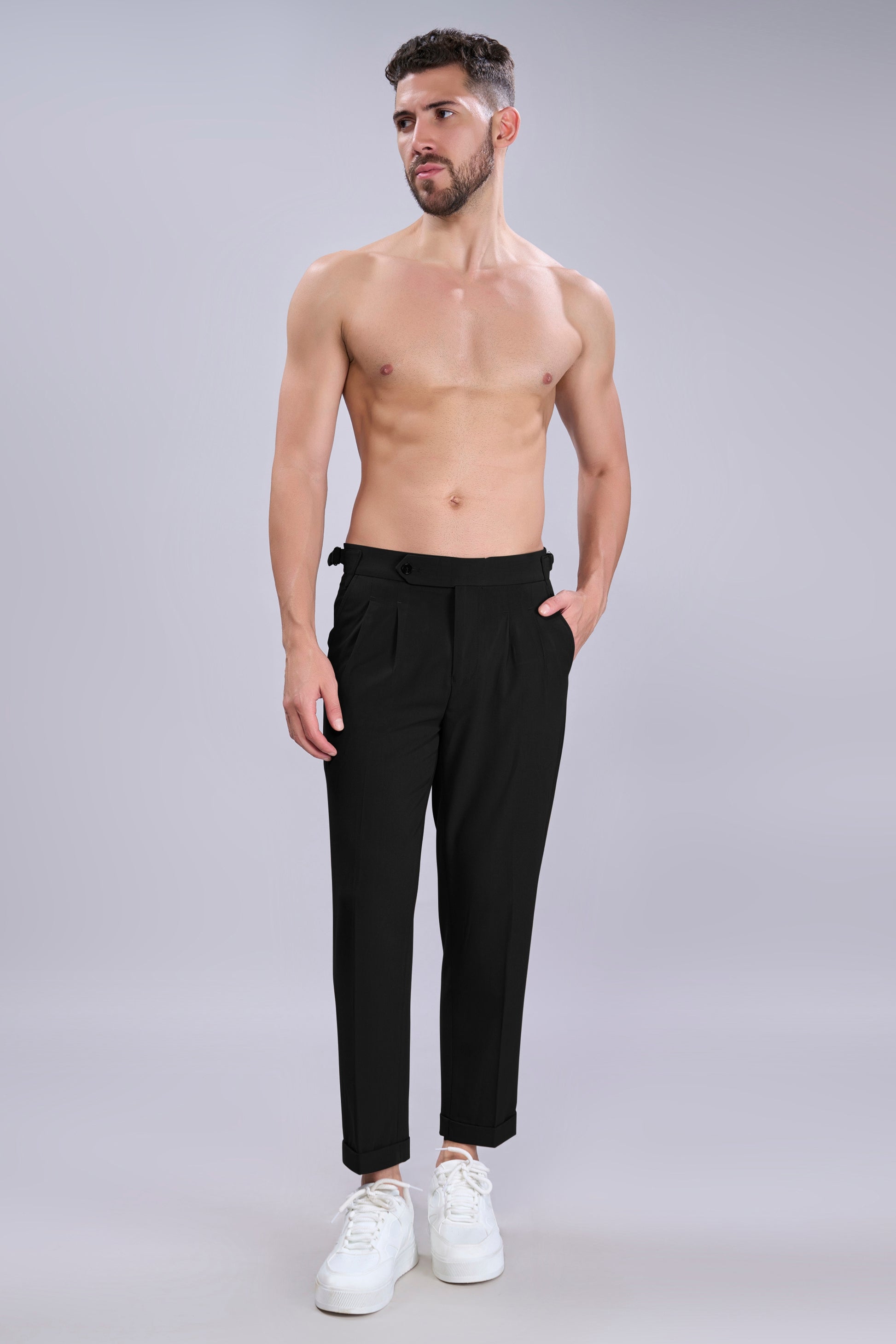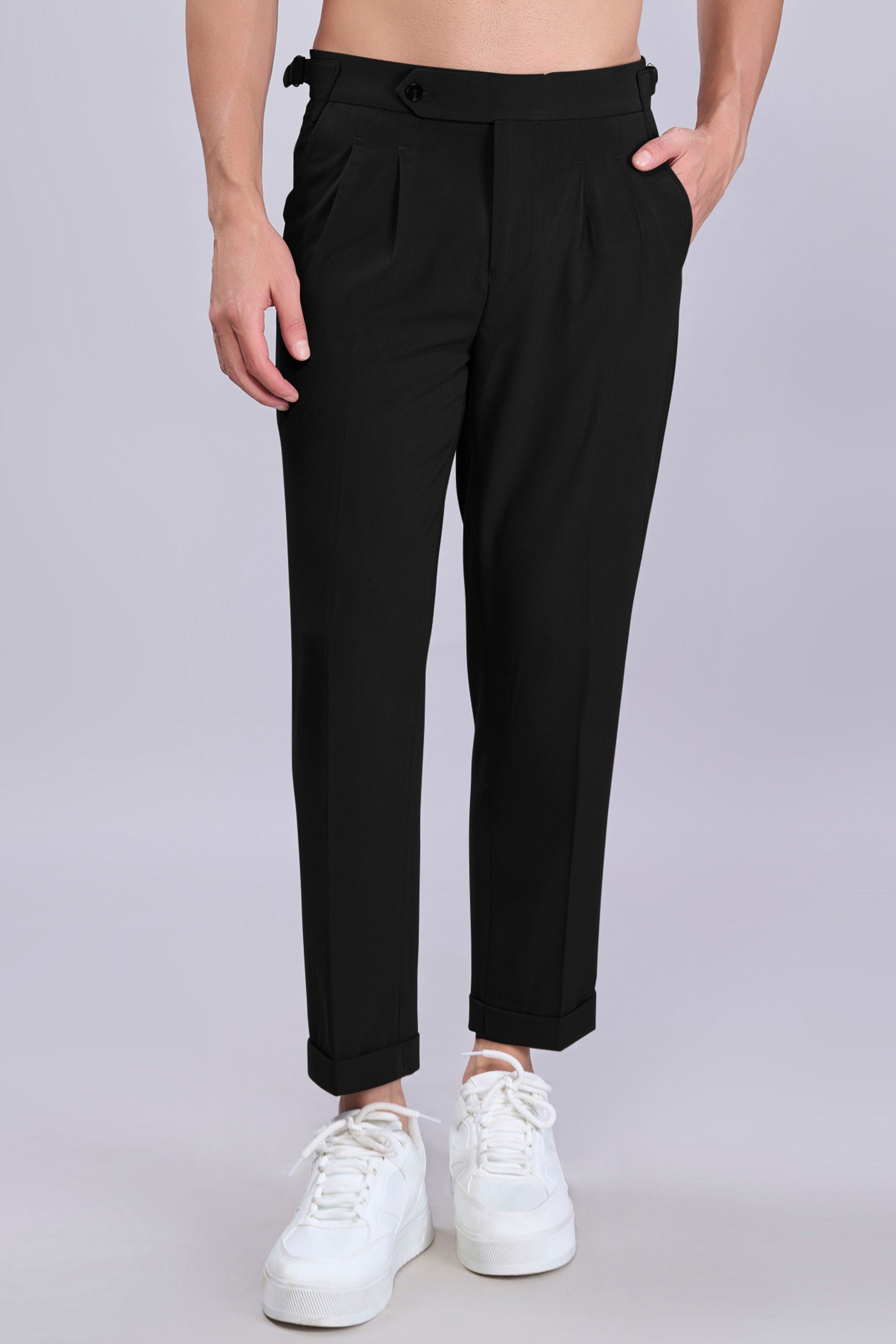 Tailored from breathable 100% cotton twill, these pleated trousers feature a tapered fit with cuffed hems and a clean extended waistband. Side adjusters with metal buckles offer a custom fit—no belt needed. Finished with angled front pockets, buttoned welt back pockets, and soft rear paneling for added comfort and structure. Perfect for smart-casual styling and everyday sophistication.