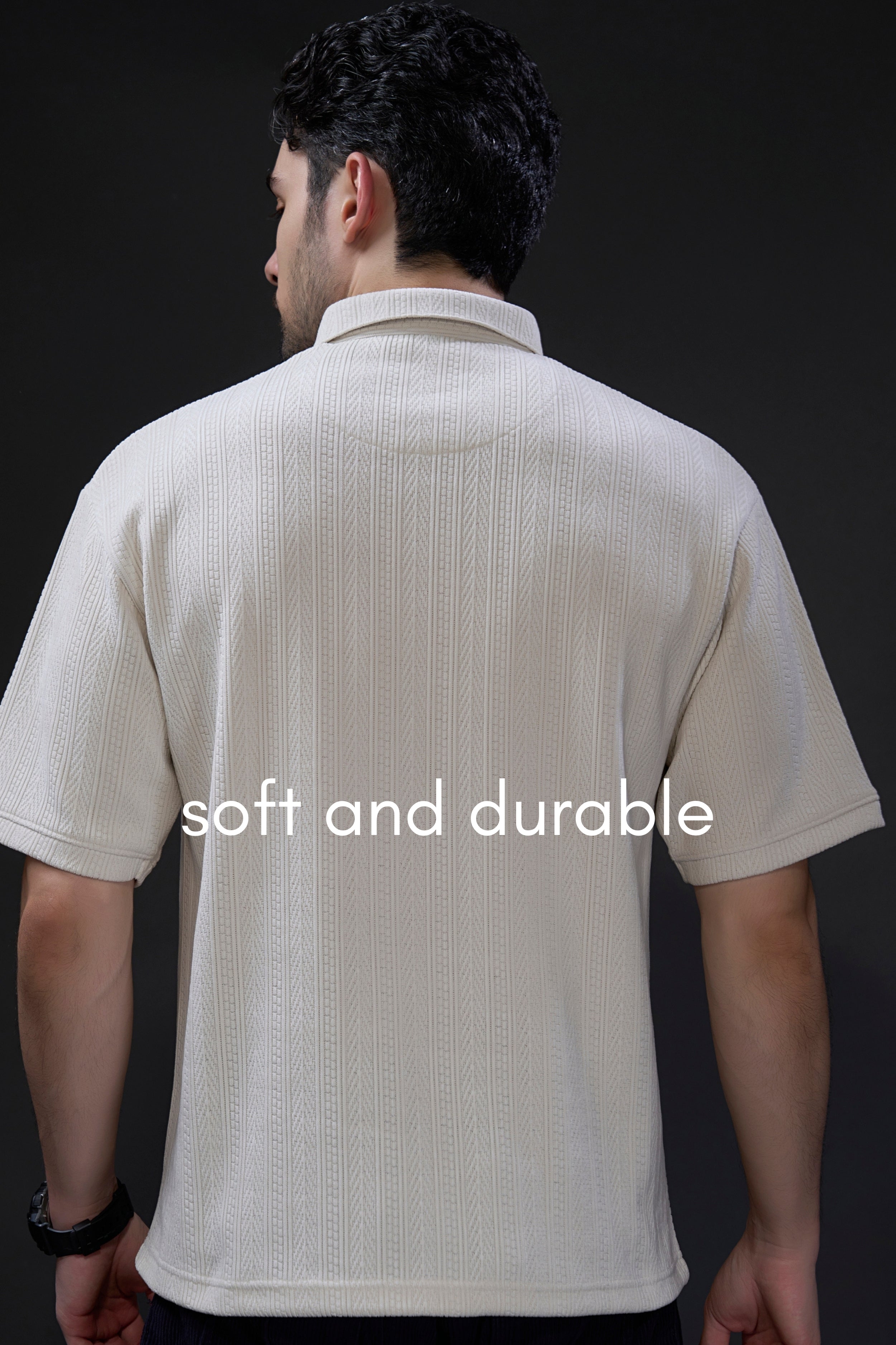 Introducing our oversized men’s polo t-shirt, crafted from soft and durable Turkey knit fabric. A button-free collar and relaxed fit for maximum comfort for casual outings or lounging at home. This polo features a muted color palette and subtle details, blending classic style with modern comfort. Elevate your wardrobe with this timeless piece.