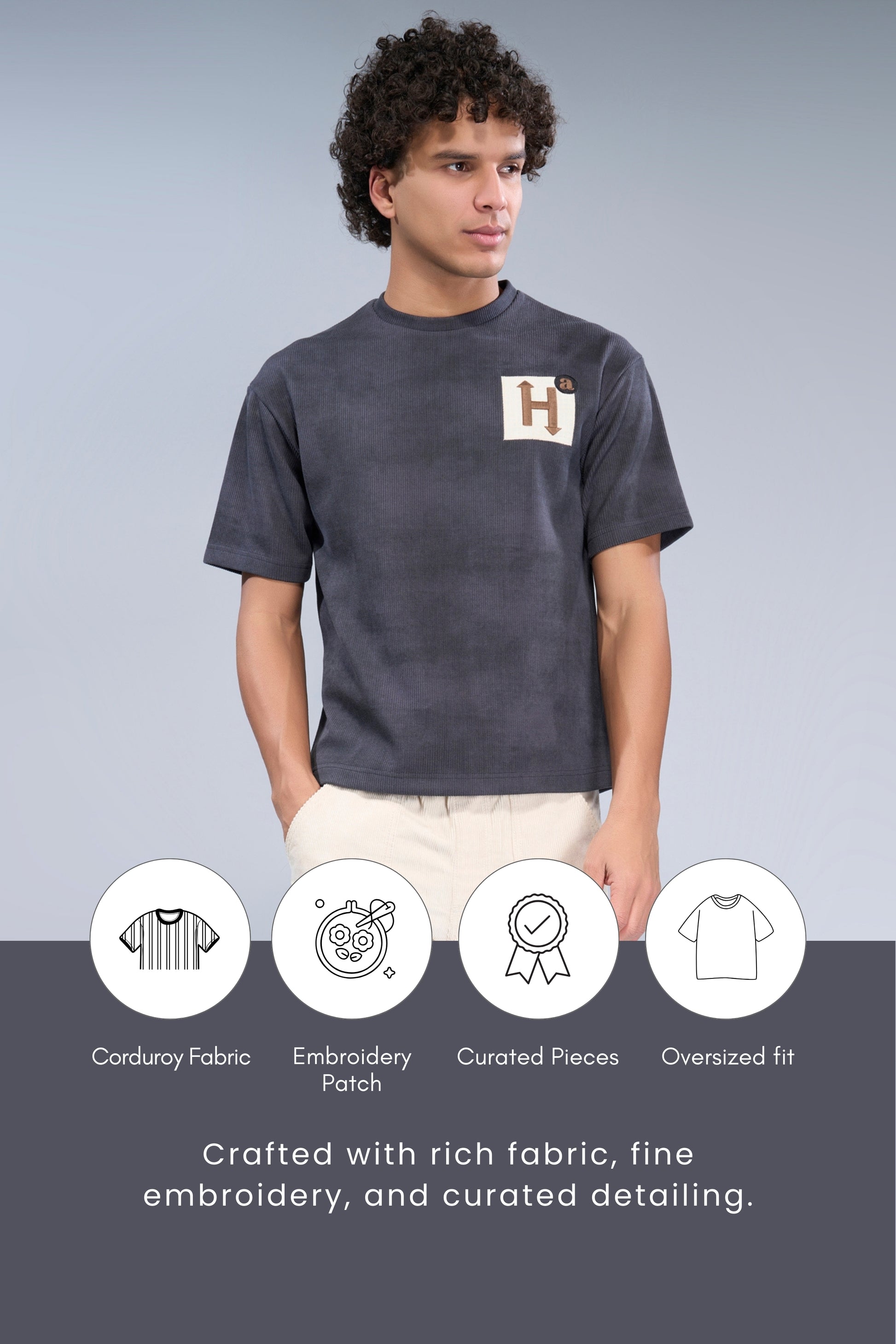 Introducing the Hue T-shirt, a stylish blend of comfort and sophistication. Made from premium corduroy fabric, this unique T-shirt offers a rich texture that stands out from the crowd. The left side features a tasteful, eye-catching print, adding a modern flair to a classic design.